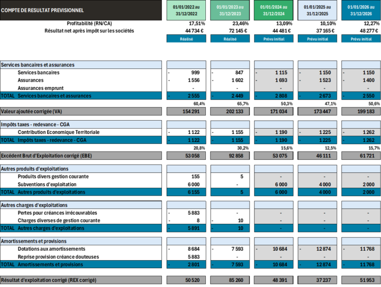 Le prévisionnel financier pluriannuel se traduit sous la forme d’un compte de résultat prévisionnel à un horizon de 3 ou 5 ans.